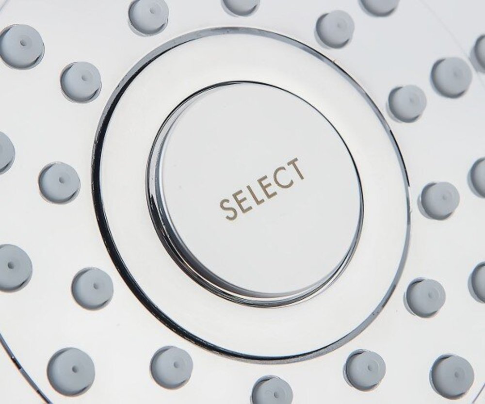 - Переключение типов струи: при помощи кнопки Select на верхнем душе;