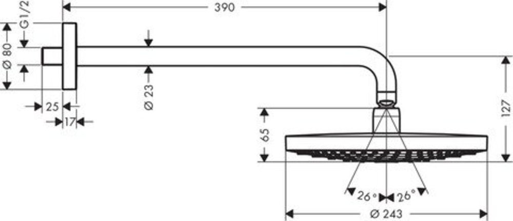 Верхний душ Hansgrohe Raindance Select ES, 24х24 см, 2 режима струи, с держателем 26470000, цвет хром