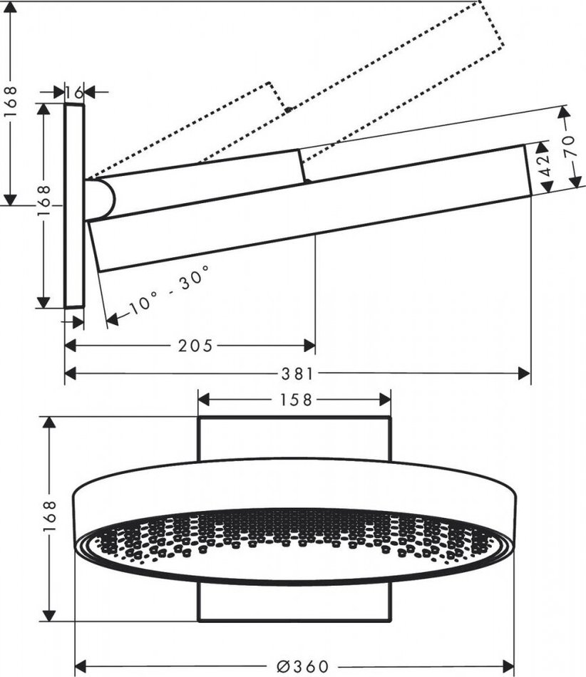 Верхний душ Hansgrohe Rainfinity 26230700, 360*360 мм, 1 режим струи, белый матовый