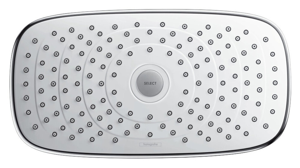 Верхний душ Hansgrohe Select 27385400, 30х16 см, 2 режима струи, с держателем, белый/хром