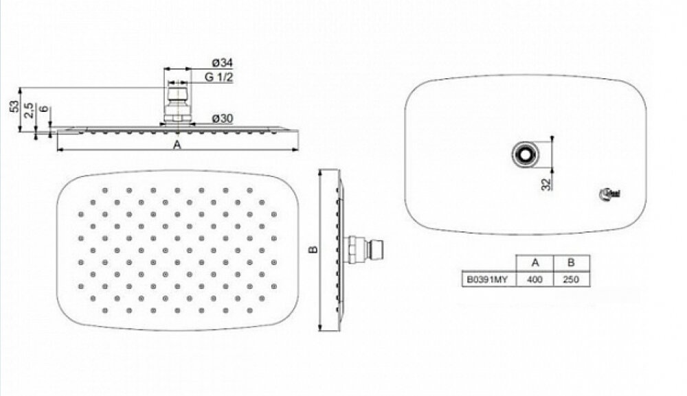 Верхний душ Ideal Standard Idealrain Luxe 25 x 40 см, ультратонкий, B0391MY