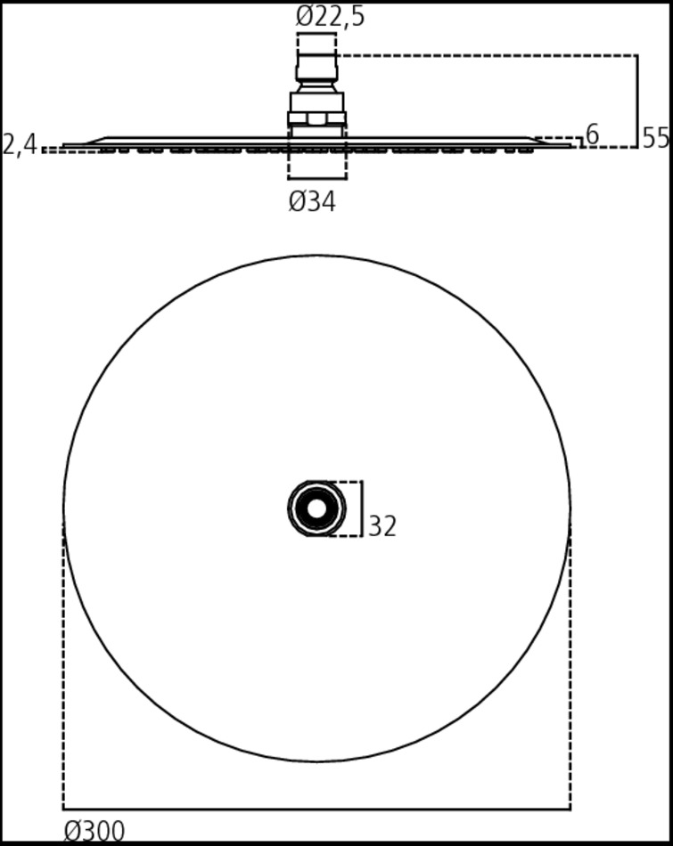 круглый верхний душ 300 мм
