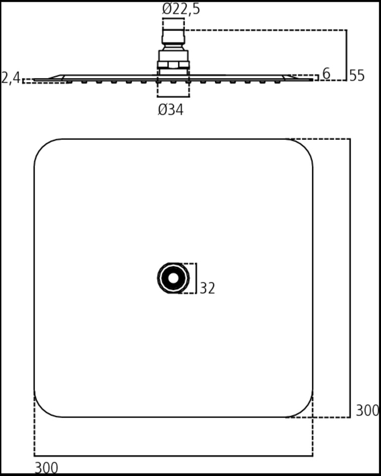 Верхний душ Ideal Standard IdeaRain LUXE B0388MY, 30*30 см, 1 режим струи, без держателя