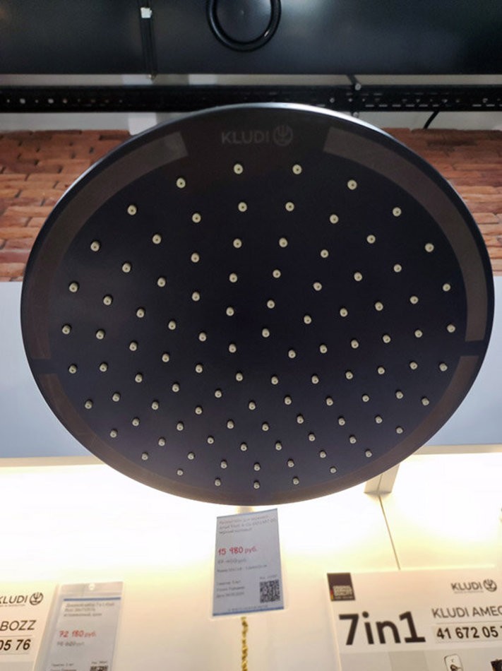 Верхний душ Kludi A-Qa 6432587-00, 25х25 см круглый, плоский 8 мм, 1 режим струи, без держателя, черный матовый