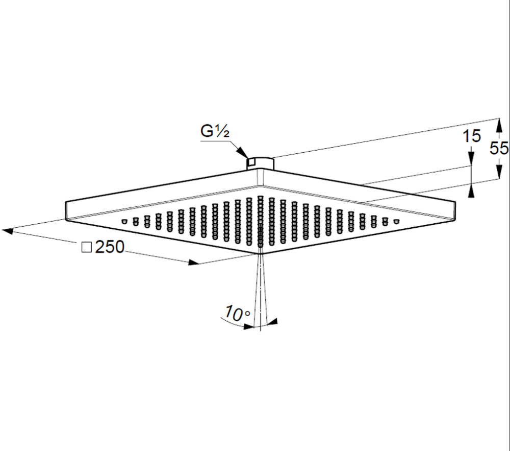 Верхний душ Kludi A-Qa 6653105-00, квадратный, 25 х 25 см, 1 режим струи, без держателя, хром