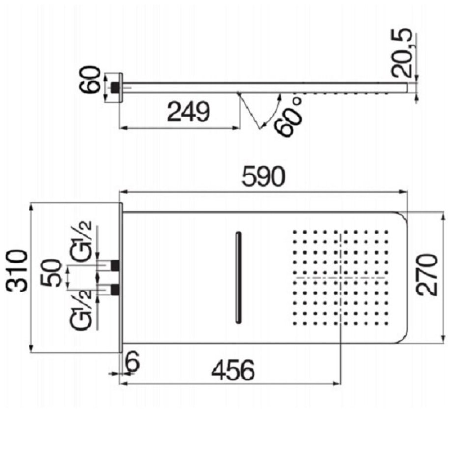 Верхний душ Nobili с шарнирным соединением, 59 х 27 см, 2 режима струи, цвет хром, AD139/130CR