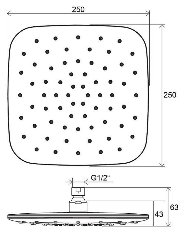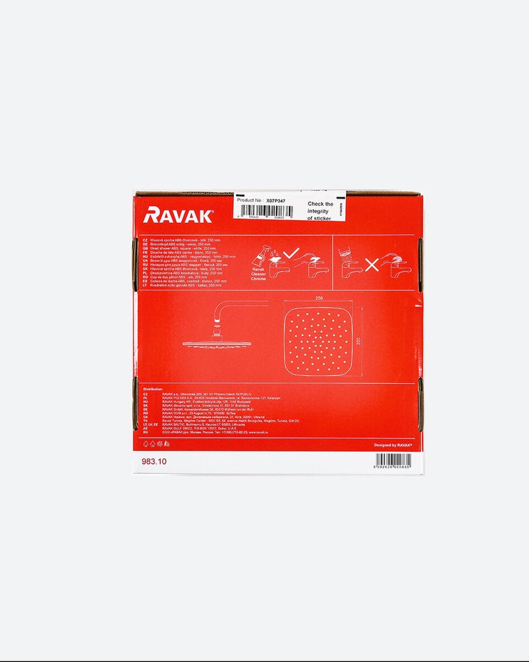 Верхний душ Ravak 983.10, 25х25 см, 1 режим струи, без держателя, X07P347