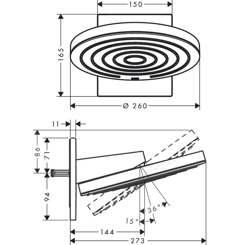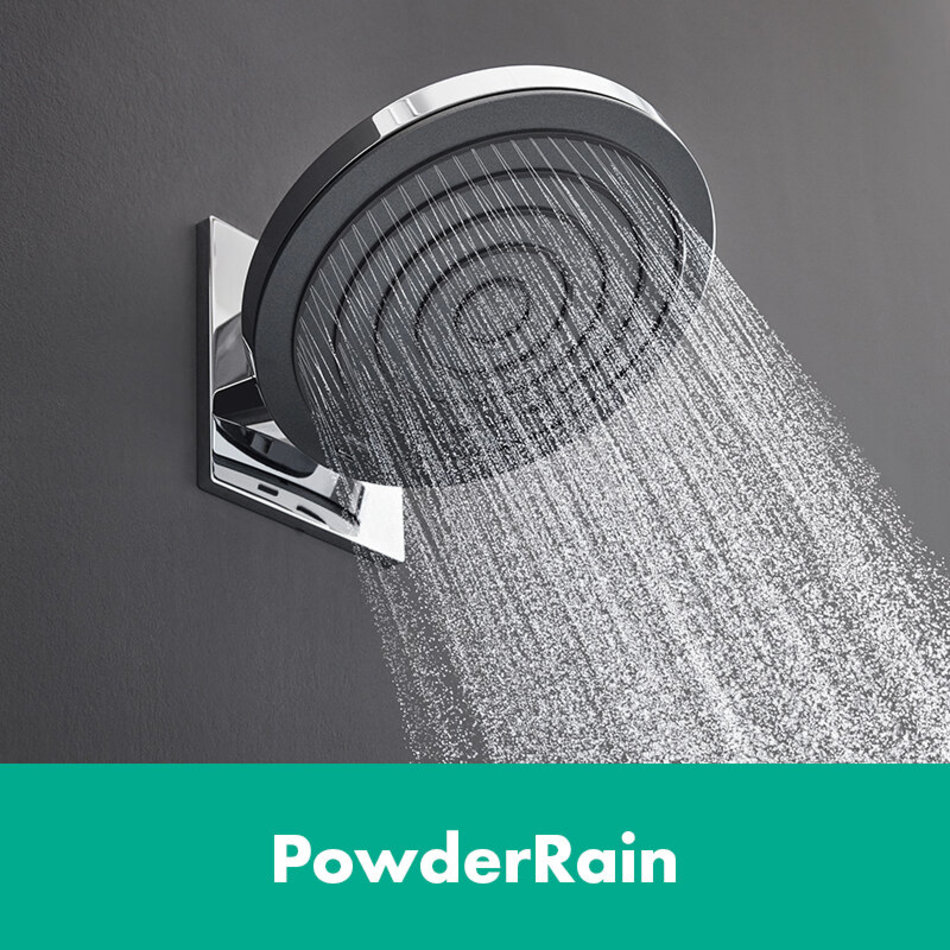 Верхний душ с держателем Hansgrohe Pulsify S, 26 см, 1 режим струи, хром, диск графит, 24150000