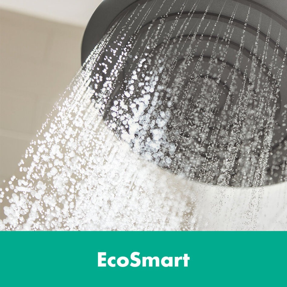 Верхний душ с держателем Hansgrohe Pulsify S, EcoSmart, 26 см, 1 режим струи, хром, диск графит, 24151000