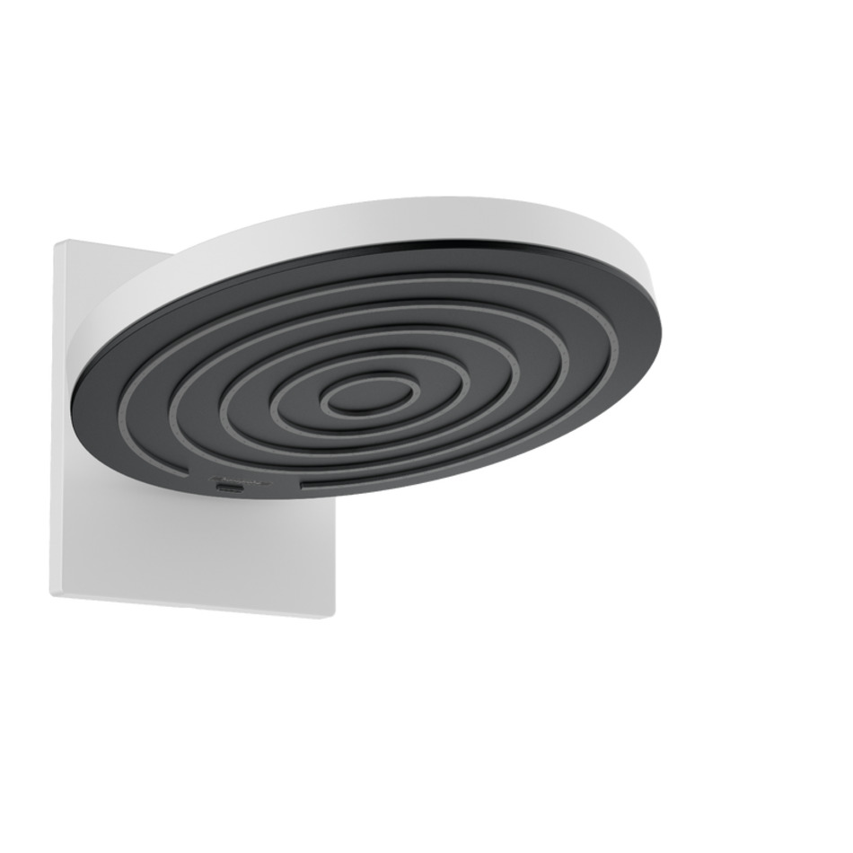 Верхний душ с держателем Hansgrohe Pulsify S, EcoSmart, 26 см, 1 режим струи, белый матовый, диск графит, 24151700