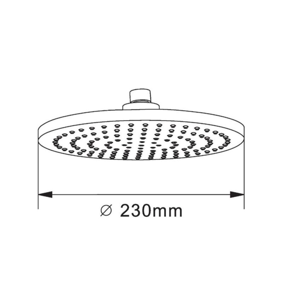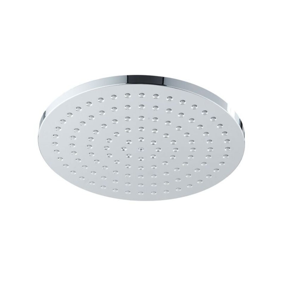 Небольшой размер круглой лейки - 230 мм, заставляет ее как бы парить над душевой кабиной, не утяжеляя общий интерьер комнаты. Множество мелких форсунок, расположенных по кругу по всей площади лейки, обеспечивают легкий рассеянный поток воды, имитирующий несильный дождь.