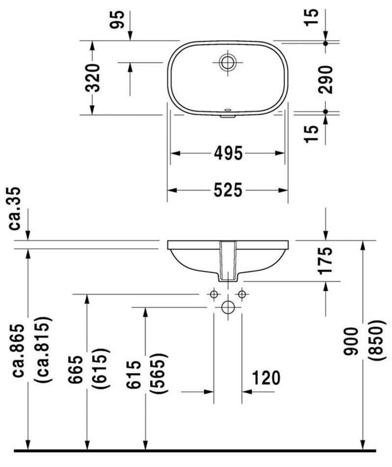 Раковина Duravit D-Code 0338490000, врезная снизу, 49.5 x 29 x 17.5 см