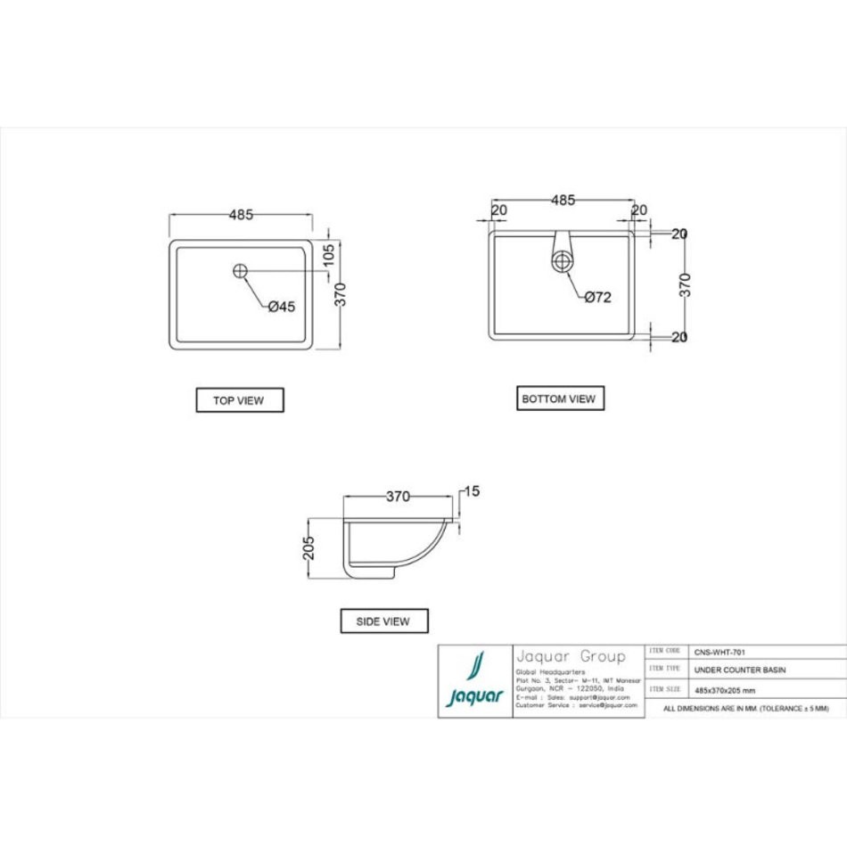 Раковина Jaquar CNS-WHT-70, 48 см, фарфор, цвет белый
