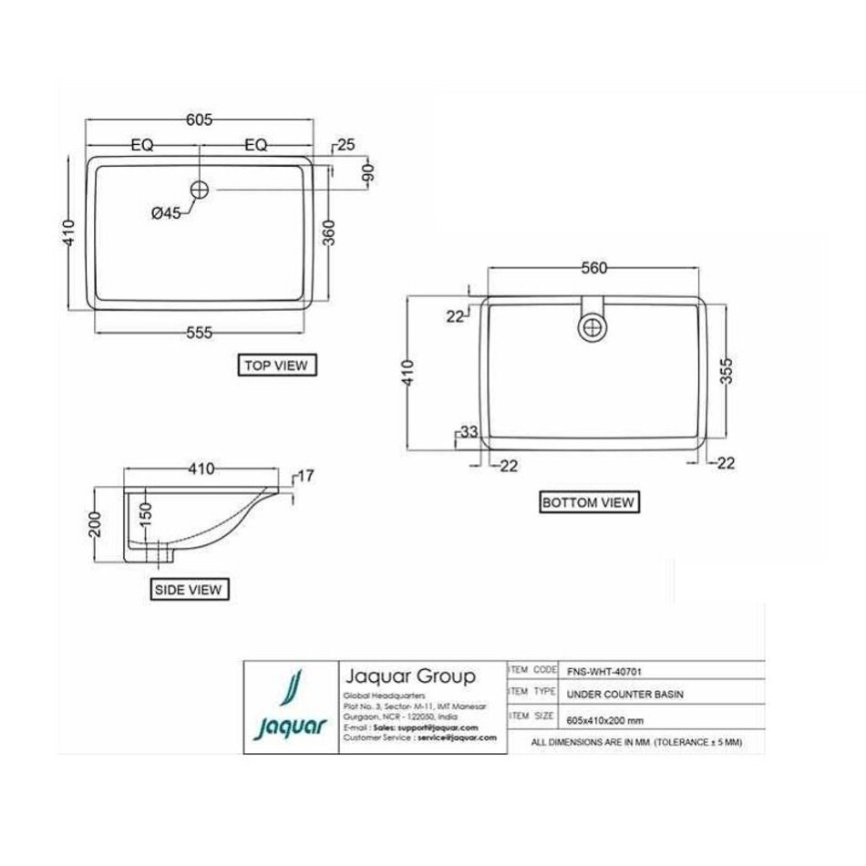 Раковина Jaquar Fonte FNS-WHT-40701, 60 х 40 см, керамика, цвет белый
