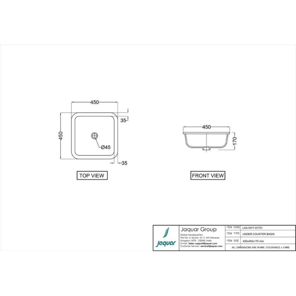 Раковина Jaquar LAS-WHT-91701, 45 см, фарфор, цвет белый