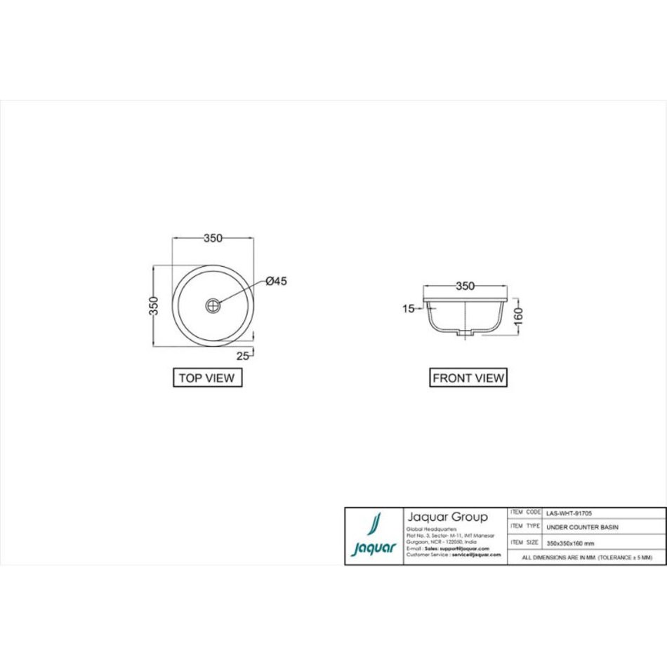 Раковина Jaquar LAS-WHT-91705, 35 см, фарфор, цвет белый
