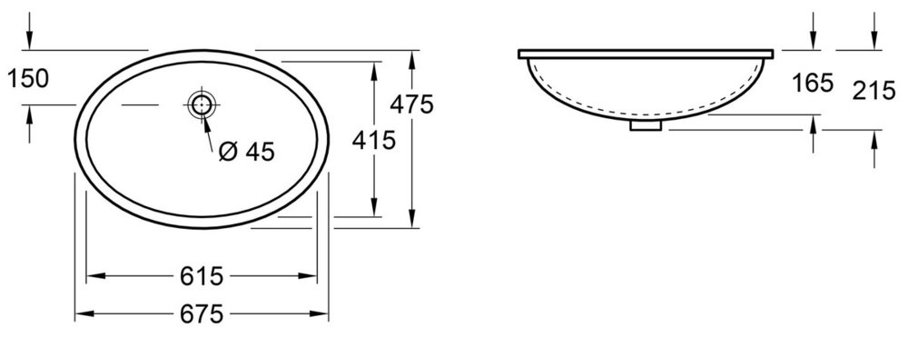 Раковина Villeroy&Boch Evana 61440001, 61.5 x 41.5 см, встраиваемая снизу, с переливом, альпийский белый
