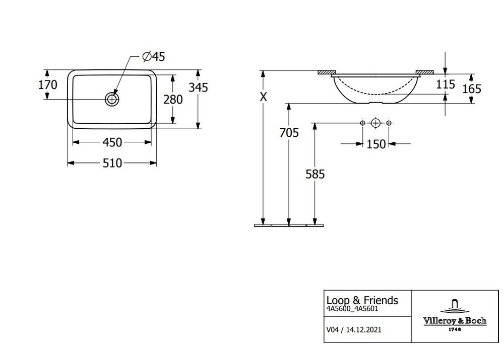Раковина Villeroy&Boch Loop&Friends 4A560001, 51 х 34.5 см, встраиваемая, альпиский белый