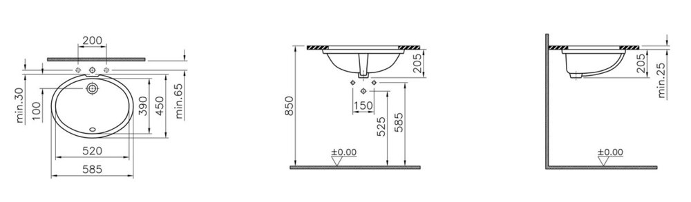 Раковина Vitra Arkitekt 52 см, встраиваемая снизу, белый, 6069B003-0012