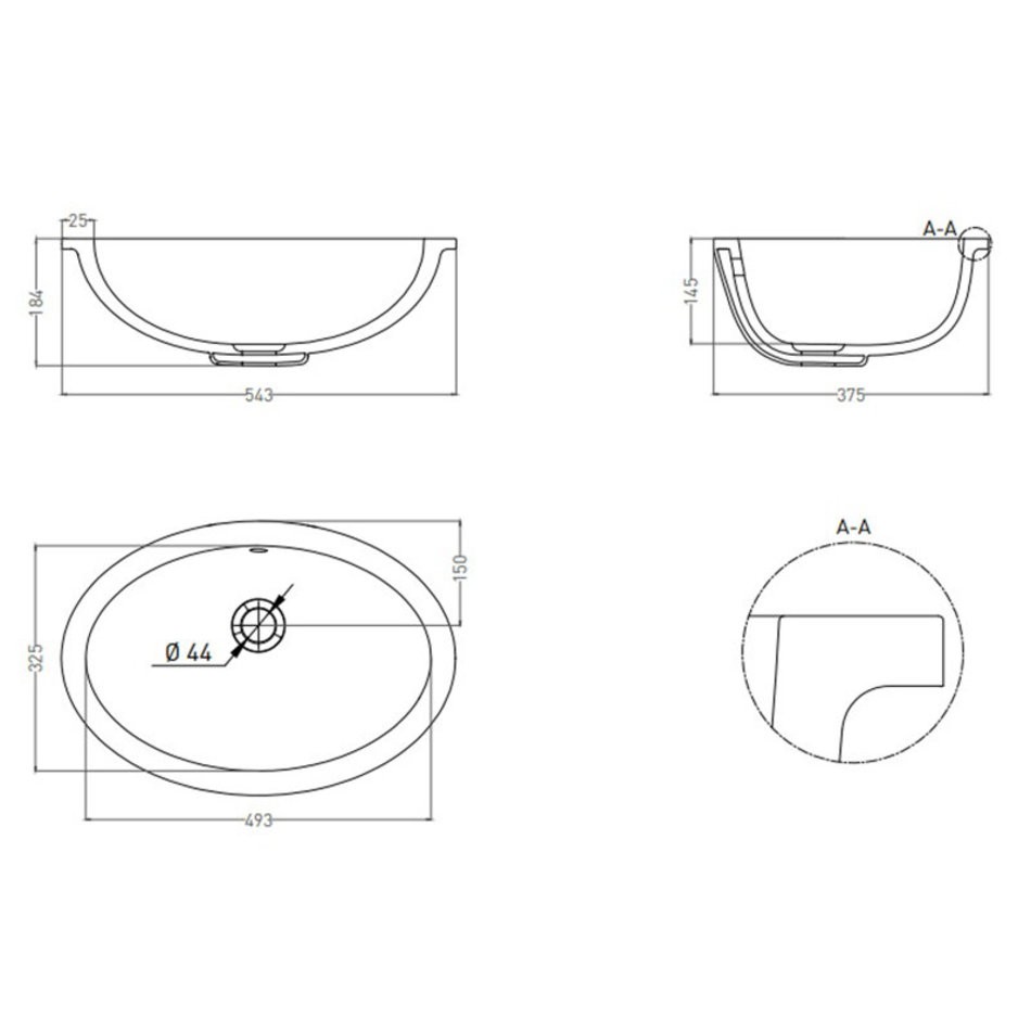 Раковина врезная Salini Marea 1101109GRF 12, 54,3 х 37,5 х 18,4 см, встраиваемая раковина, из искусственного камня S-Sense, белый глянцевый, покраска по RAL полностью