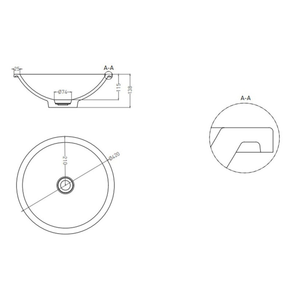 Раковина врезная Salini Marea 1802205MRF 05, 42 х 42 х 13,8 см, встраиваемая раковина, из искусственного камня S-Stone, белый матовый, покраска по RAL полностью