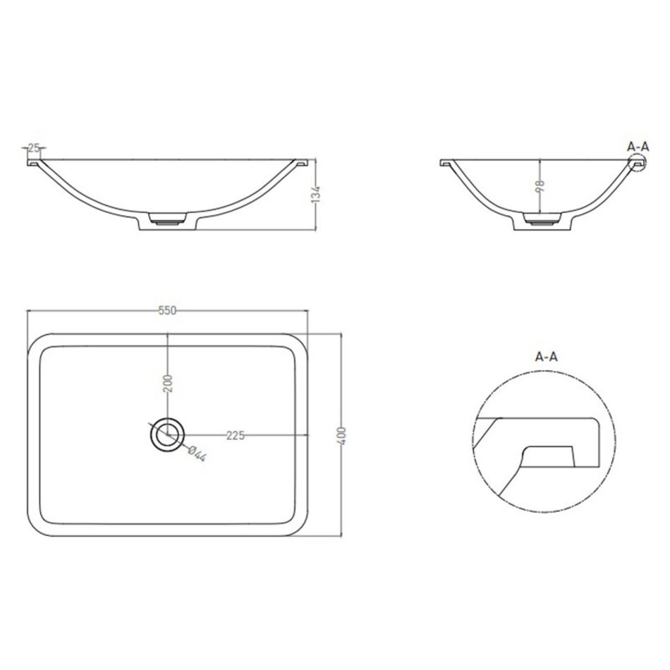 Раковина врезная Salini Marea 1802206MRF 06, 55 х 40 х 13,4 см, встраиваемая раковина, из искусственного камня S-Stone, белый матовый, покраска по RAL полностью