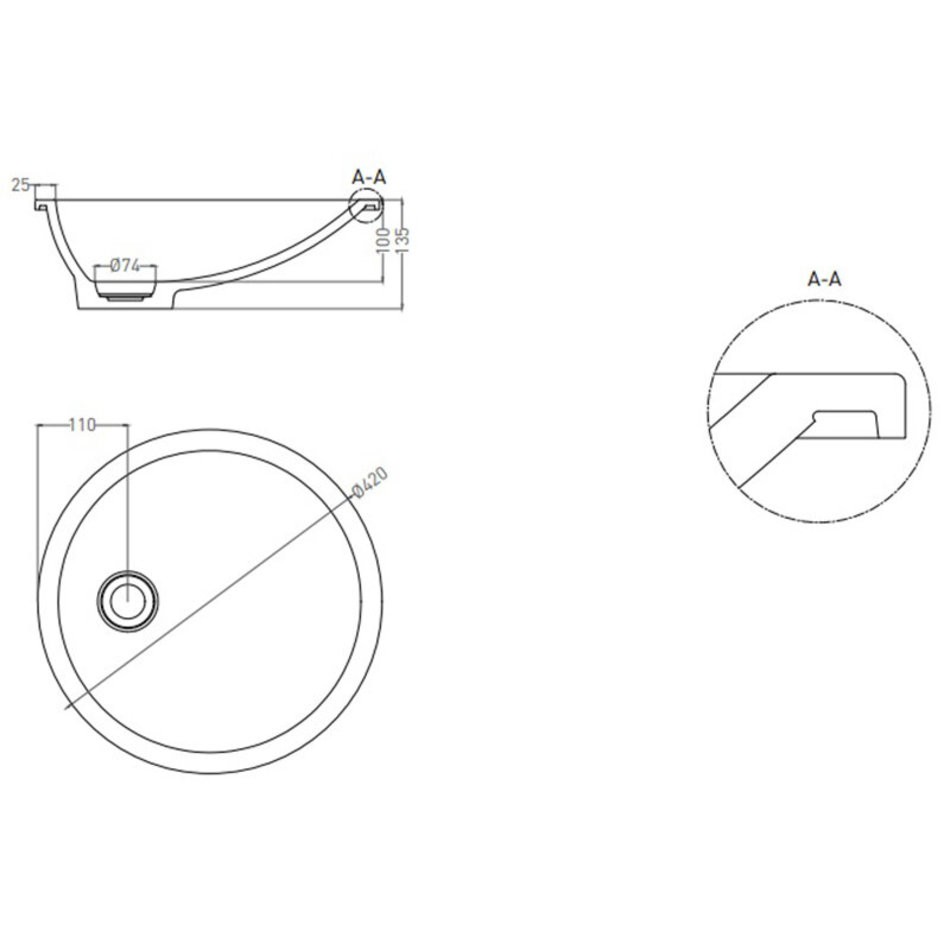 Раковина врезная Salini Marea 1802208MRF 08, 42 х 42 х 13,5 см, встраиваемая раковина, из искусственного камня S-Stone, белый матовый, покраска по RAL полностью