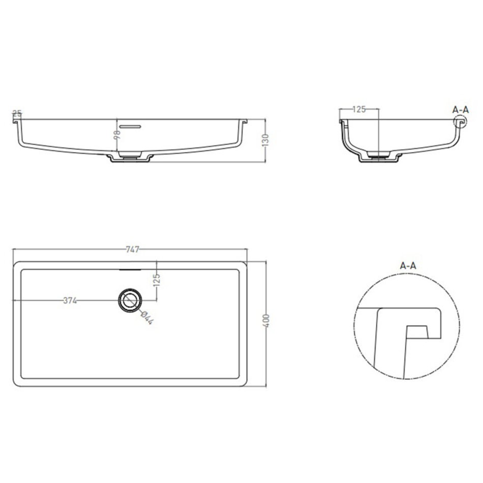 Раковина врезная Salini Marea 10, 74,7 х 40 х 13 см, встраиваемая раковина, из искусственного камня S-Stone, белый матовый, покраска по RAL полностью, 1802210MRF