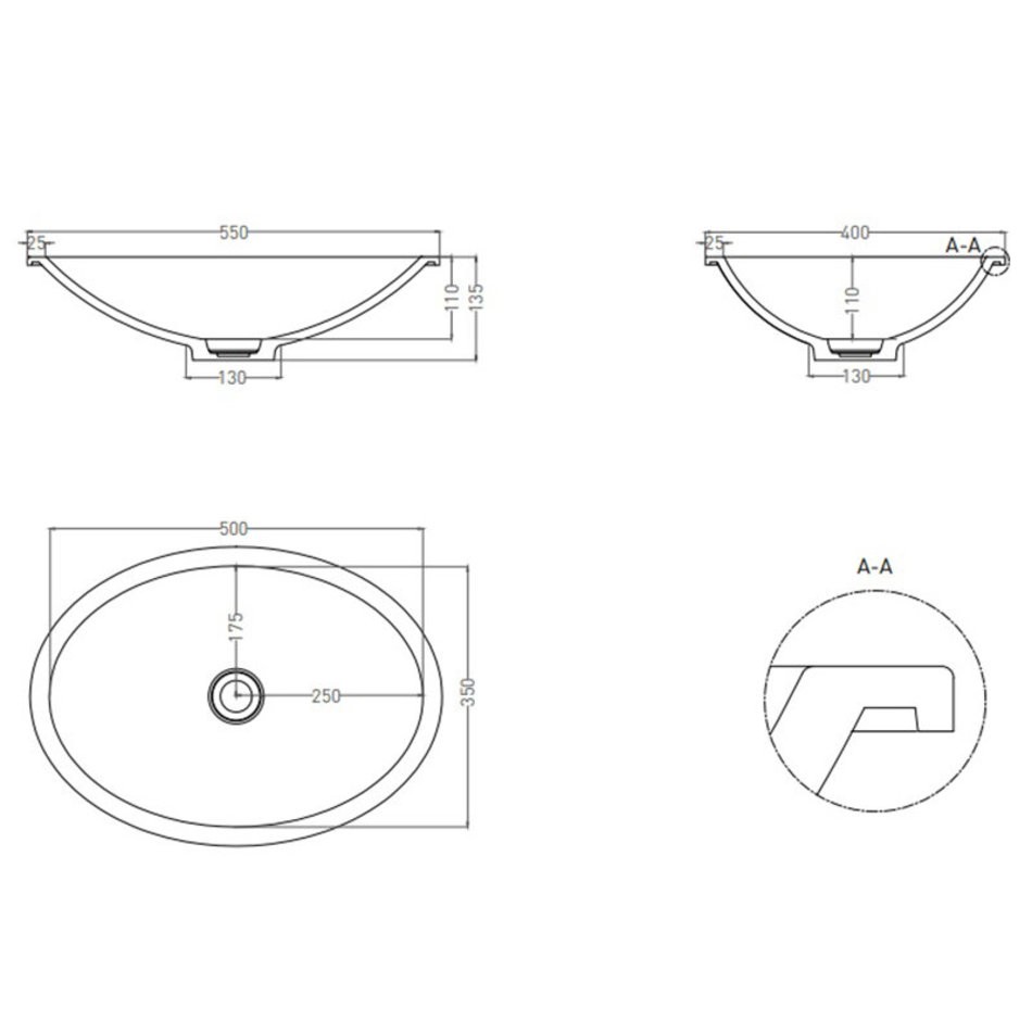 Раковина врезная Salini Marea 1802211M 11, 55 х 40 х 13,5 см, встраиваемая раковина, из искусственного камня S-Stone, белый матовый