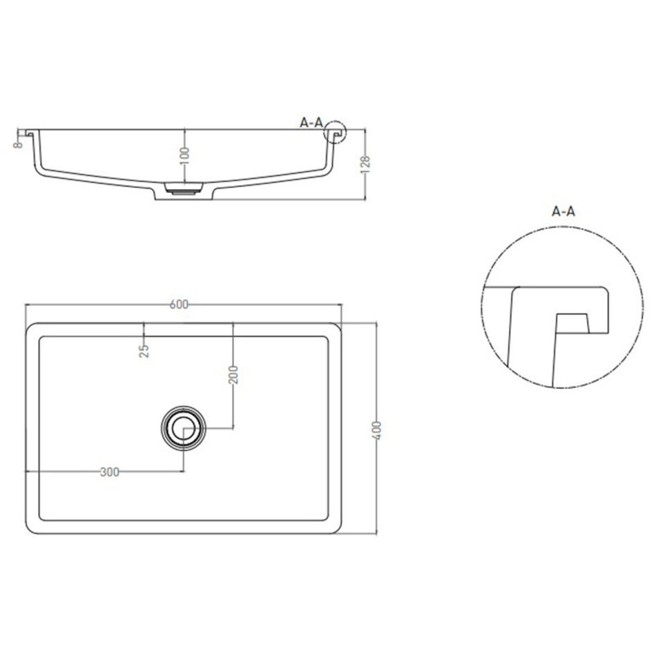Раковина врезная Salini Marea 1802214MRF 14, 60 х 40 х 12,8 см, встраиваемая раковина, из искусственного камня S-Stone, белый матовый, покраска по RAL полностью