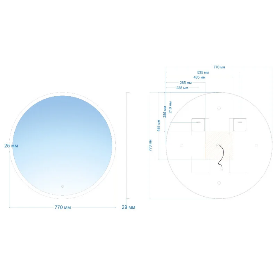 Оснащение: подсветка, сенсорный выключатель, диммер
