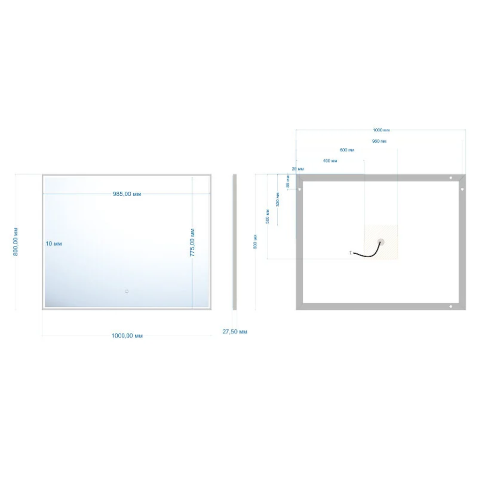 Оснащение: подсветка, сенсорный выключатель, диммер