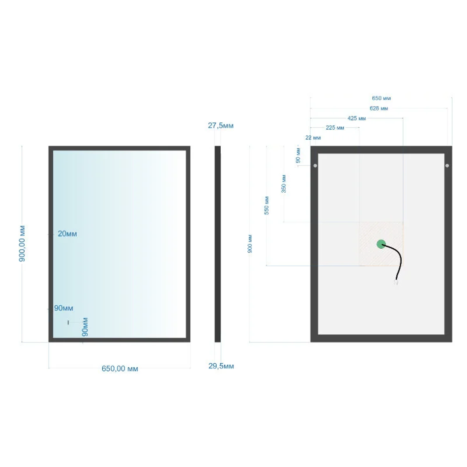 Оснащение: подсветка, бесконтактный выключатель, диммер