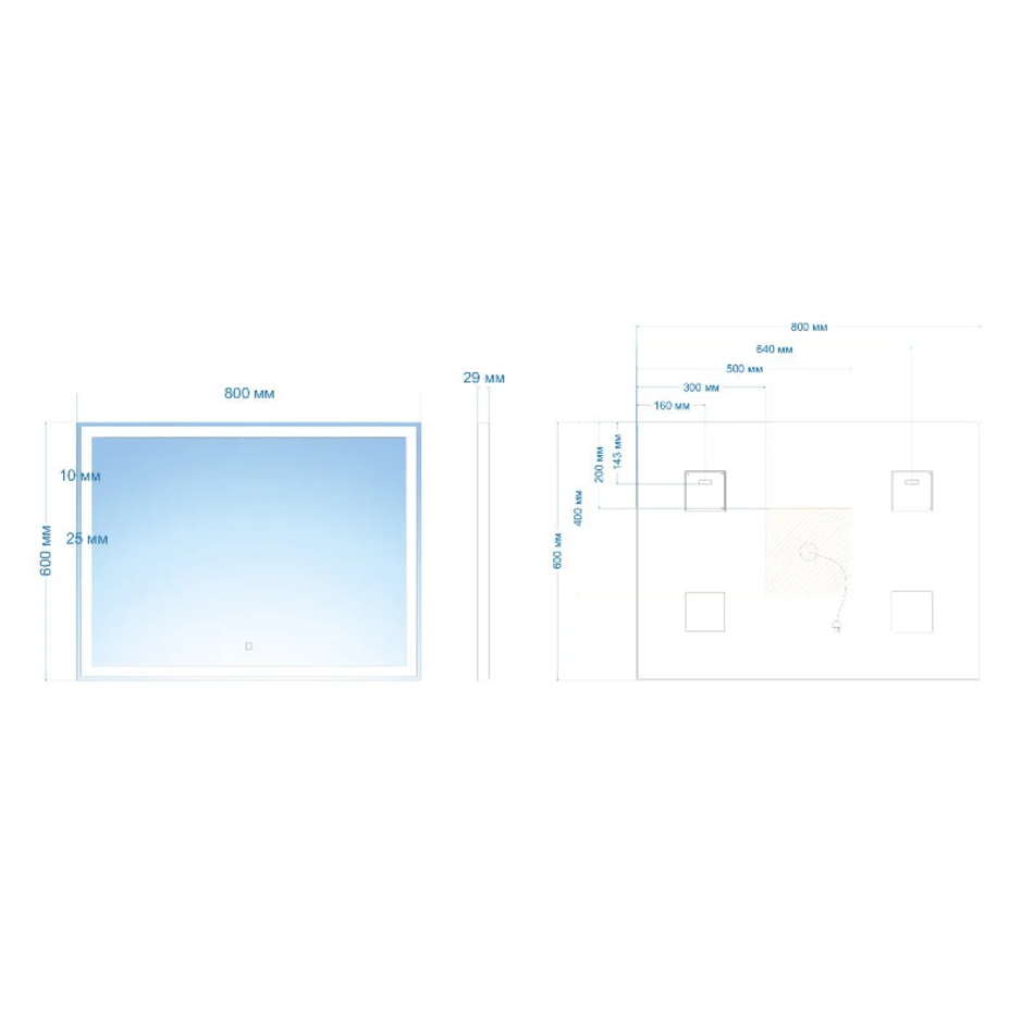 Оснащение: подсветка, сенсорный выключатель, диммер