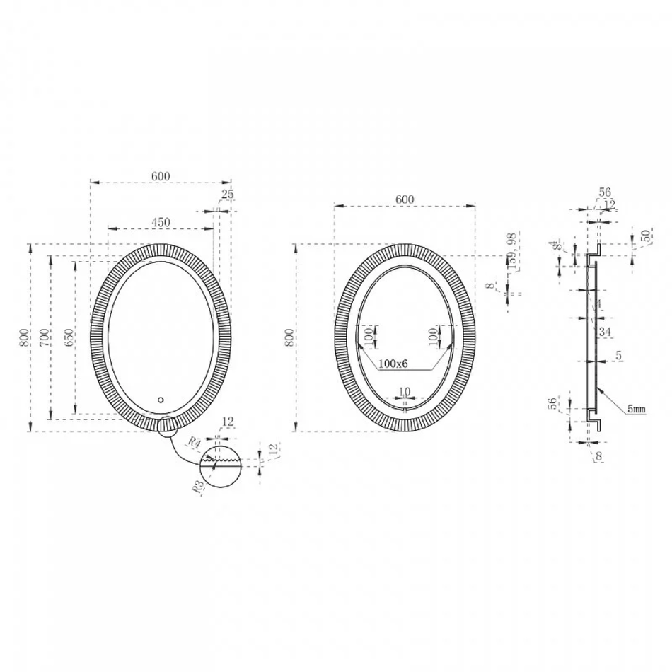 Зеркало Abber Stein AS6601Violett, 60 х 80 см, с подсветкой, рама фиолетовая