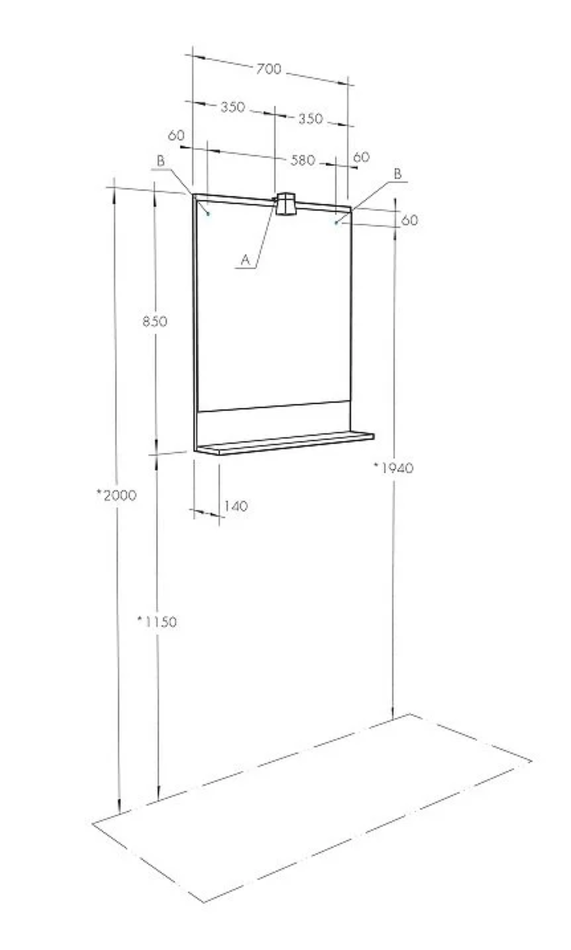 Зеркало С подсветкой, лампа - halogen Размер: 70 x 14 x 85 см Монтаж: подвесной С полками Материал: ЛДСП Форма: прямоугольная Цвет: дуб сомерсет