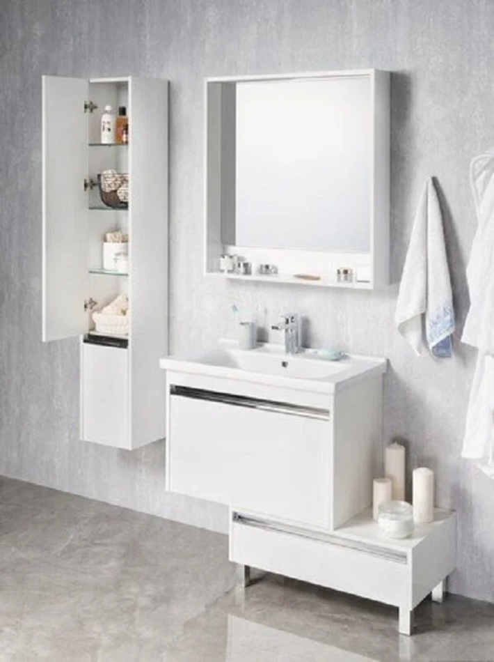 Зеркало настенное Размер: 80 x 15 x 85 см С подсветкой сверху и снизу С навесом Материал: МДФ Форма: прямоугольная Цвет: белый глянцевый