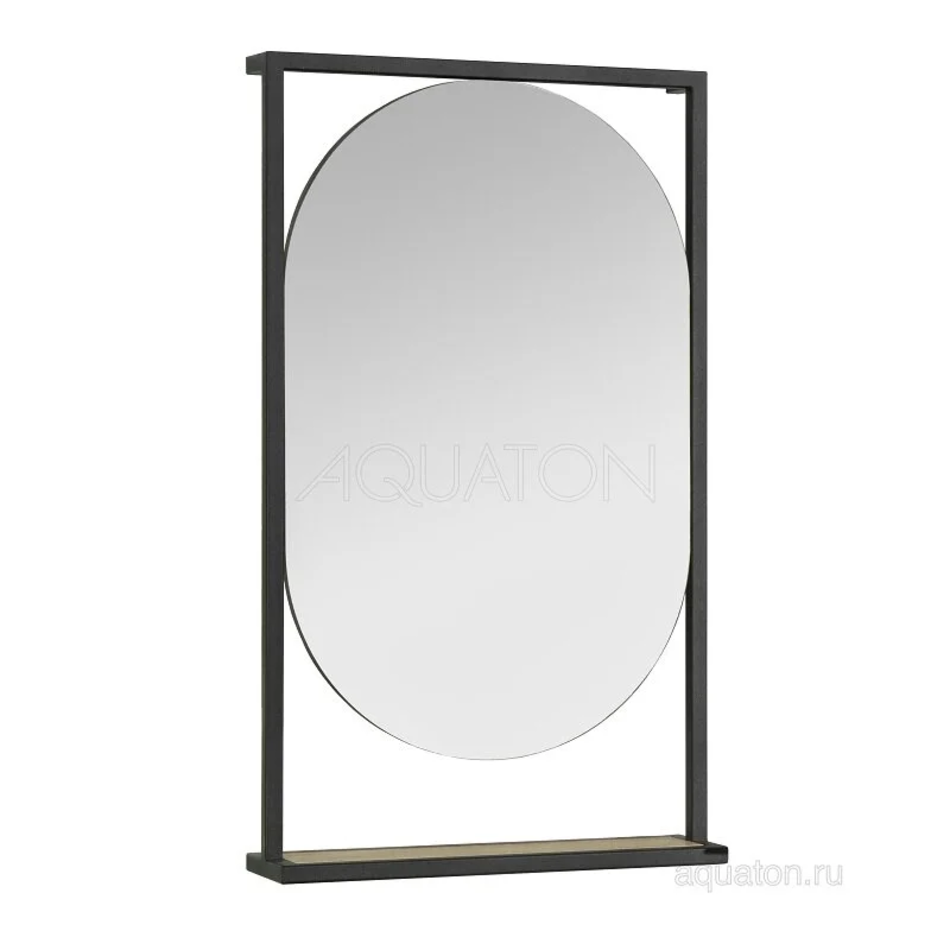 Зеркало Лофт Фабрик в размере 50 отличается необычным оригинальным дизайном и удобным функционалом. Черные металлические профили в форме прямоугольника обрамляют овальное зеркало, под которым находится полочка из влагостойкой ламинированной плиты в цвете Дуб Кантри. Открытая полочка удобна для косметических и декоративных мелочей, которые всегда должны быть под рукой.