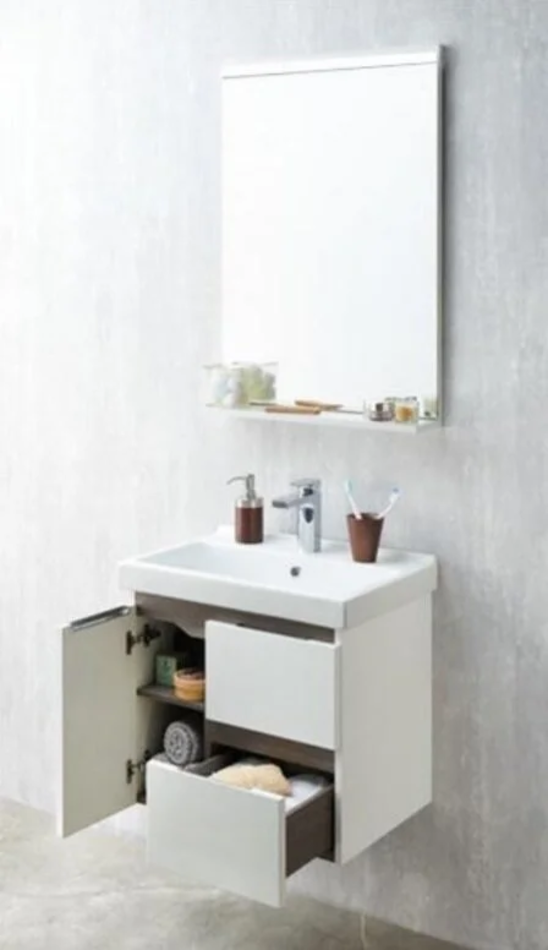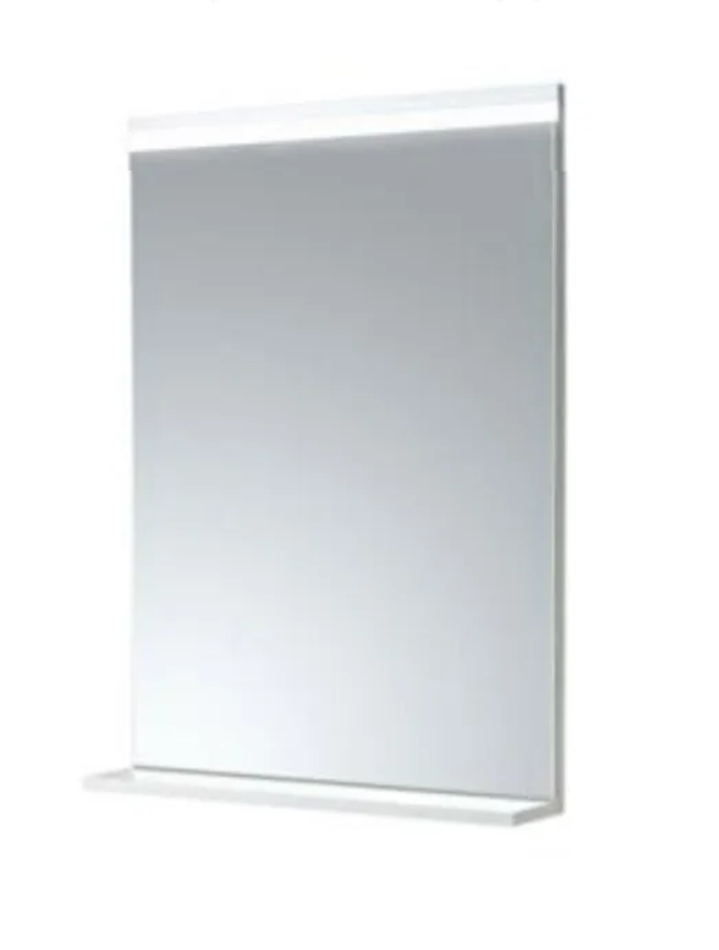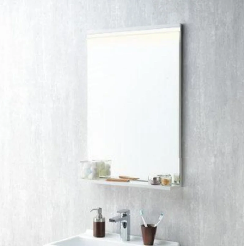 Зеркало настенное Размер: 60 x 11.5 x 85 см С подсветкой сверху Полка Материал: МДФ Форма: прямоугольная Цвет: белый/грецкий орех