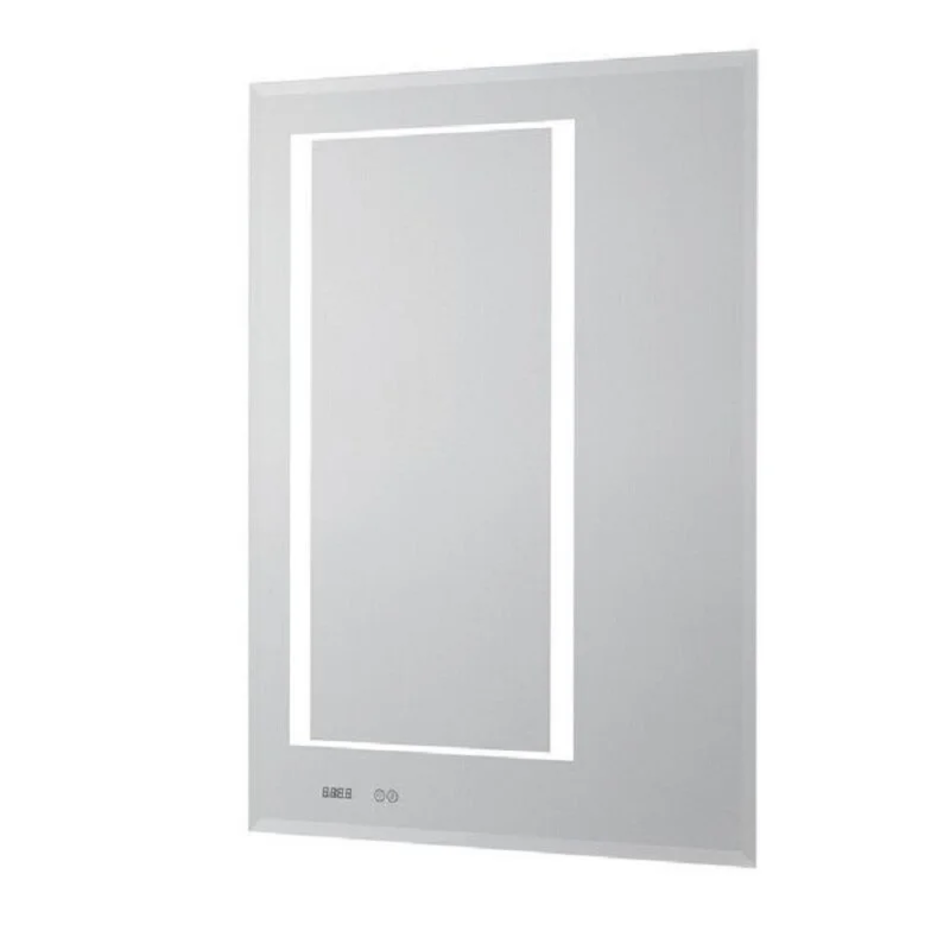 На легком зеркале на алюминиевой раме выделена c помощью светодиодной подсветки зона над чашей. Зеркало также оснащено часами, системой ANTI STEAM и сенсорным выключателем.