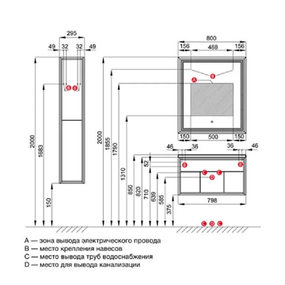 Зеркало Акватон Уэльс 80 с подсветкой (1A214002WA010)