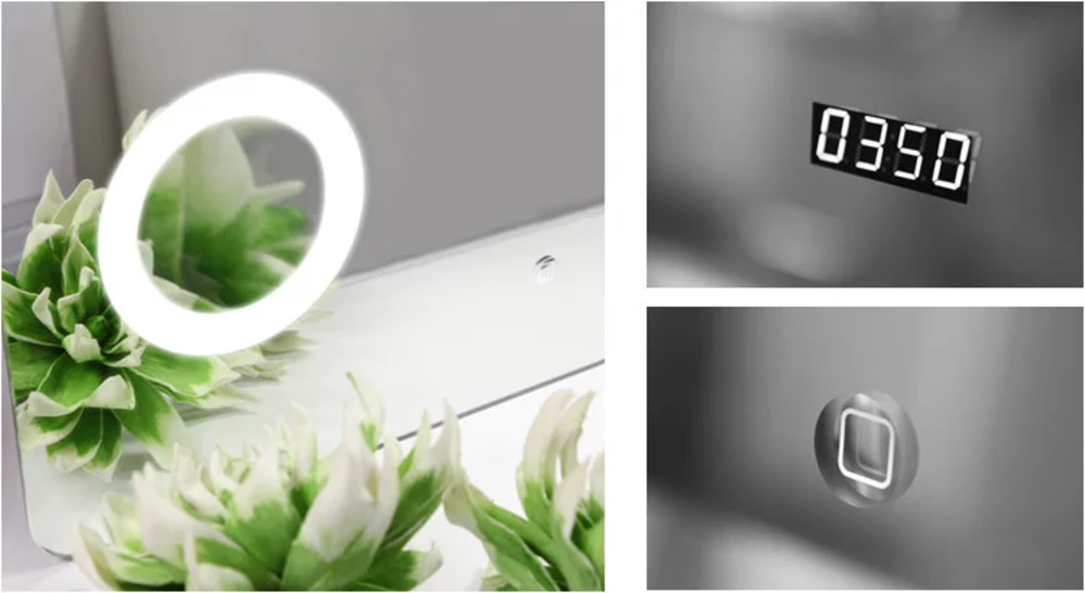 Размер: 80*3*70 см С подсветкой С часами С увеличительным зеркалом Цвет: белый