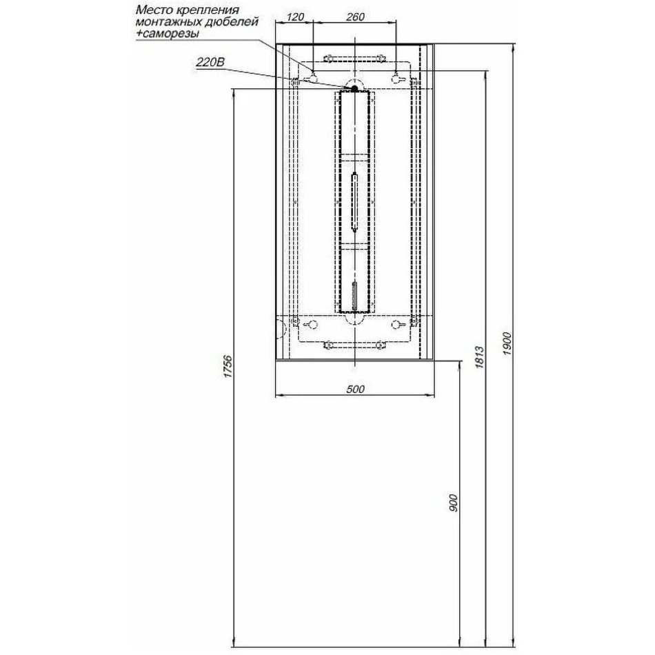 Габариты (ШхВхГ): 500х1000x40 мм.