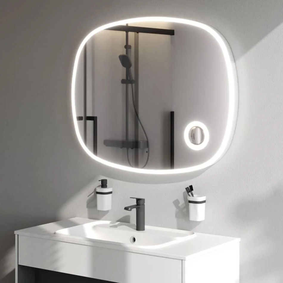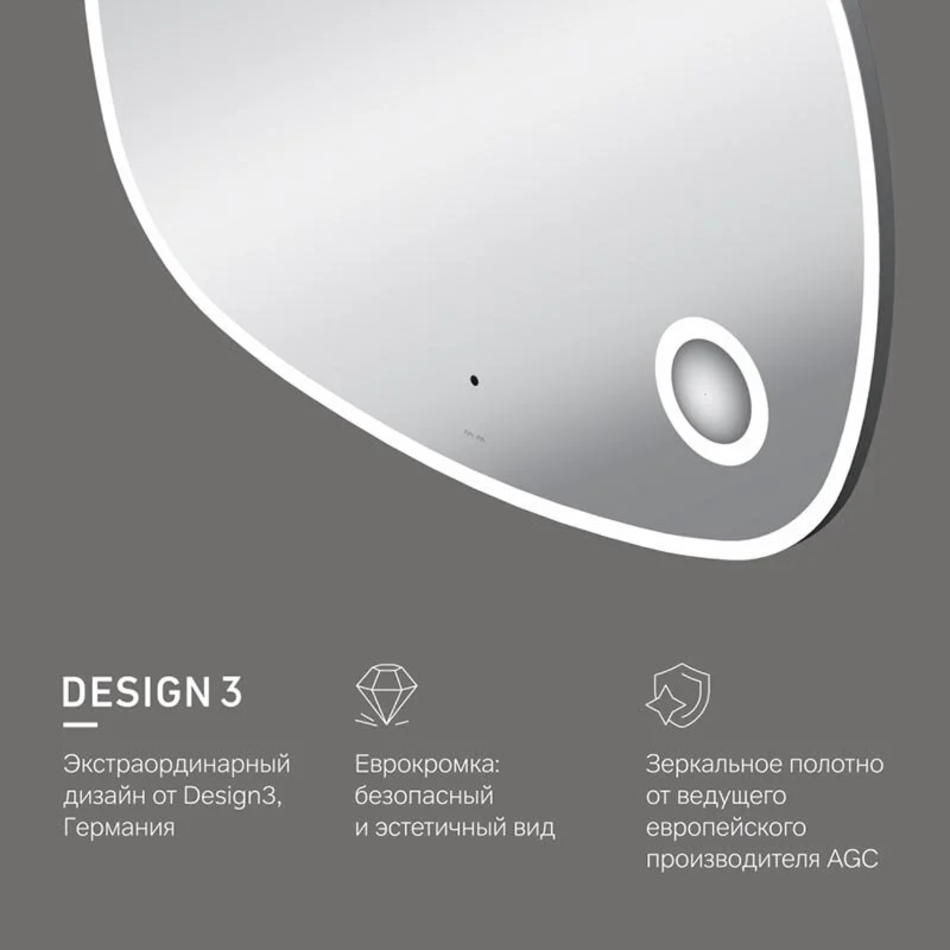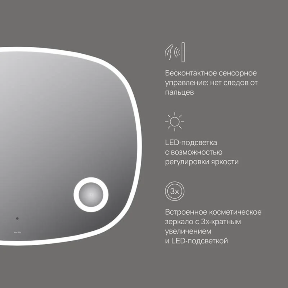 Зеркало с LED-подсветкой – это современный, стильный и функциональный элемент интерьера, который станет украшением ванной комнаты. Зеркало Func оригинальной формы подойдет как для классического интерьера ванной комнаты, так и для современных вариантов дизайна.Зеркало Func сочетает в себе абсолютную эстетику и комфорт. Инновационная LED-подсветка по контуру с функцией диммирования. Интегрированное косметическое зеркало с 3-х-кратным увеличением и дополнительной подсветкой. В качестве элемента LED-подсветки используется светодиодная лента, которая создает мягкое и равномерное свечение по периметру всего зеркала. Управление подсветкой осуществляется при помощи бесконтактного сенсора Touchless. Сенсор нового поколения позволяет управлять включением/выключением и яркостью LED-подсветки без касания зеркального полотна. Зеркало дольше остается чистым. Зеркало поставляется в комплекте с настенным крепежом и инструкцией.