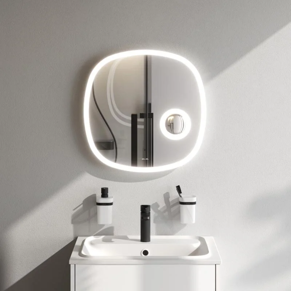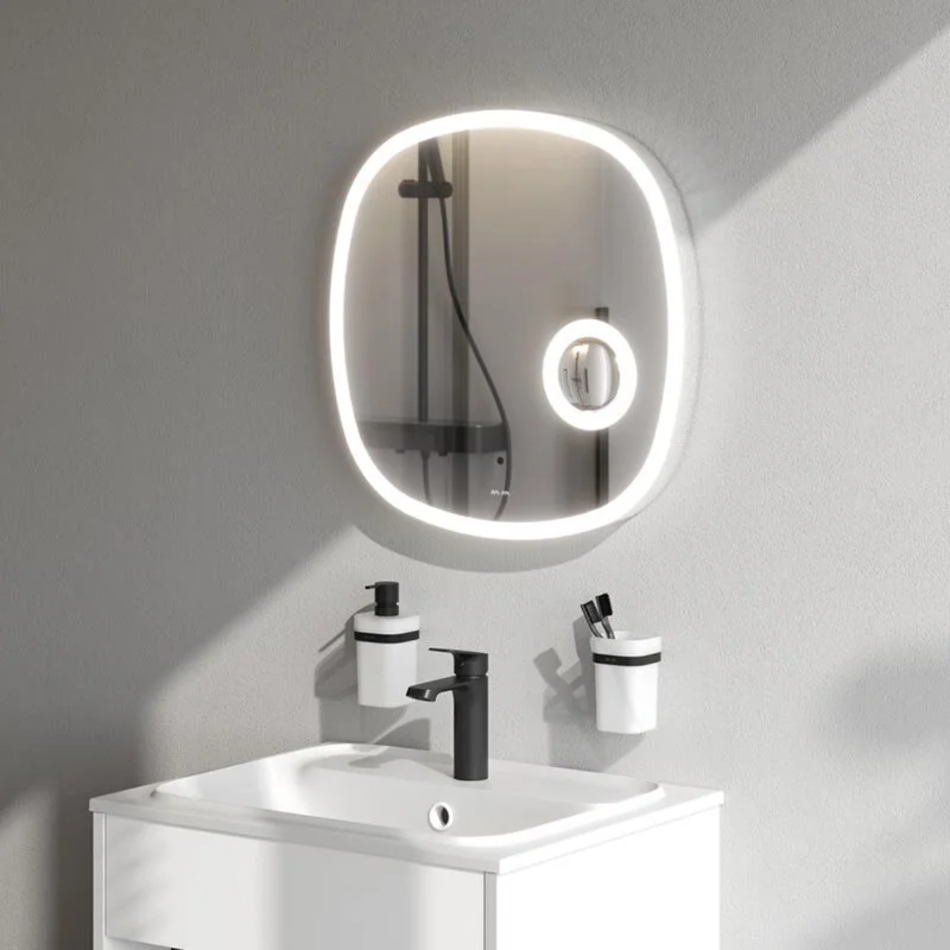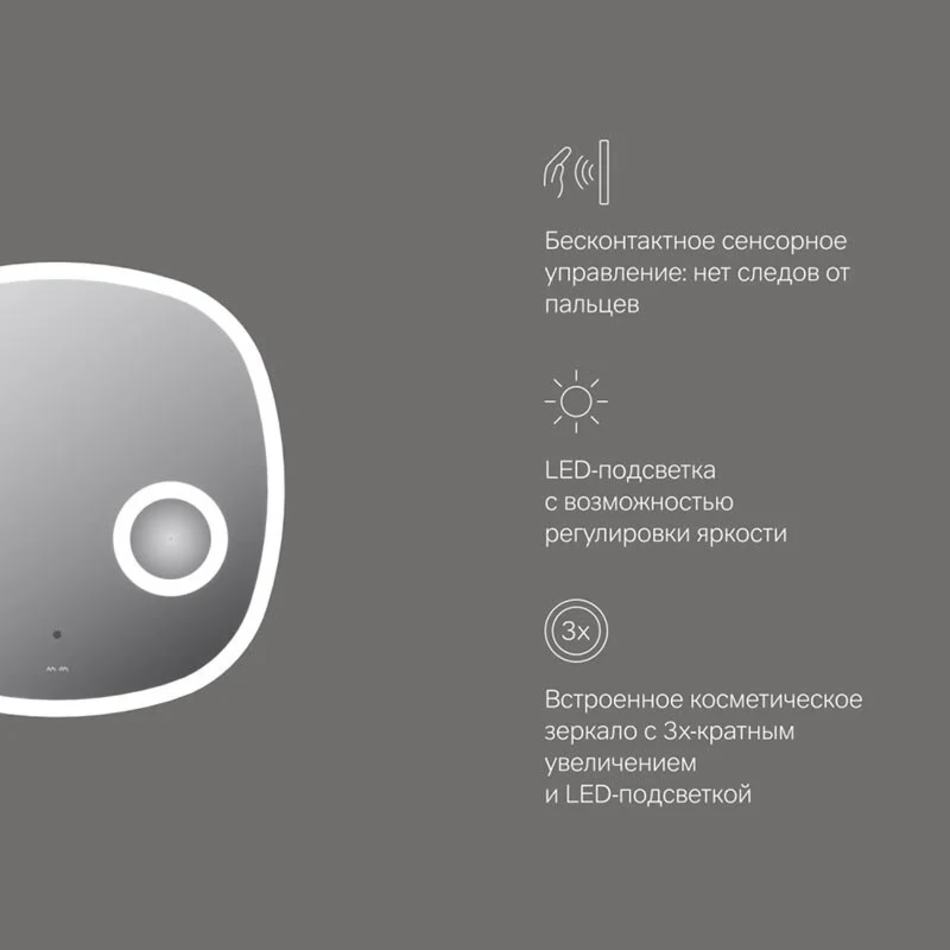 Зеркало с LED-подсветкой – это современный, стильный и функциональный элемент интерьера, который станет украшением ванной комнаты. Зеркало Func оригинальной формы подойдет как для классического интерьера ванной комнаты, так и для современных вариантов дизайна.Зеркало Func сочетает в себе абсолютную эстетику и комфорт. Инновационная LED-подсветка по контуру с функцией диммирования. Интегрированное косметическое зеркало с 3-х-кратным увеличением и дополнительной подсветкой. В качестве элемента LED-подсветки используется светодиодная лента, которая создает мягкое и равномерное свечение по периметру всего зеркала. Управление подсветкой осуществляется при помощи бесконтактного сенсора Touchless. Сенсор нового поколения позволяет управлять включением/выключением и яркостью LED-подсветки без касания зеркального полотна. Зеркало дольше остается чистым. Зеркало поставляется в комплекте с настенным крепежом и инструкцией.