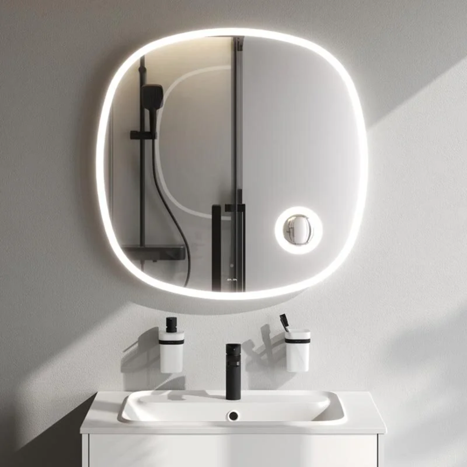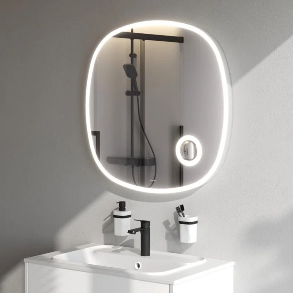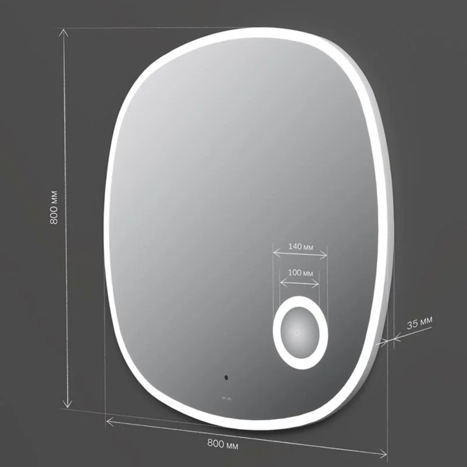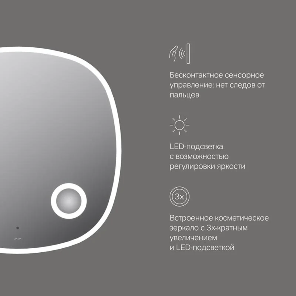 Зеркало с LED-подсветкой – это современный, стильный и функциональный элемент интерьера, который станет украшением ванной комнаты. Зеркало Func оригинальной формы подойдет как для классического интерьера ванной комнаты, так и для современных вариантов дизайна.Зеркало Func сочетает в себе абсолютную эстетику и комфорт. Инновационная LED-подсветка по контуру с функцией диммирования. Интегрированное косметическое зеркало с 3-х-кратным увеличением и дополнительной подсветкой. В качестве элемента LED-подсветки используется светодиодная лента, которая создает мягкое и равномерное свечение по периметру всего зеркала. Управление подсветкой осуществляется при помощи бесконтактного сенсора Touchless. Сенсор нового поколения позволяет управлять включением/выключением и яркостью LED-подсветки без касания зеркального полотна. Зеркало дольше остается чистым. Зеркало поставляется в комплекте с настенным крепежом и инструкцией.