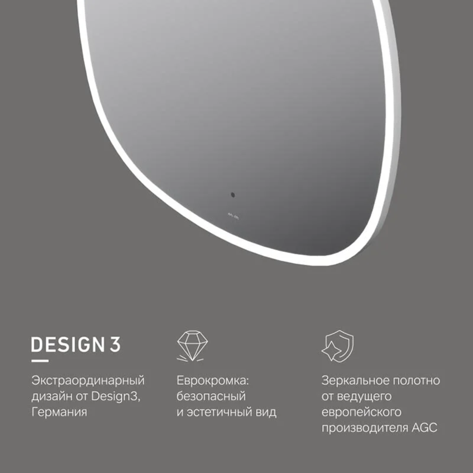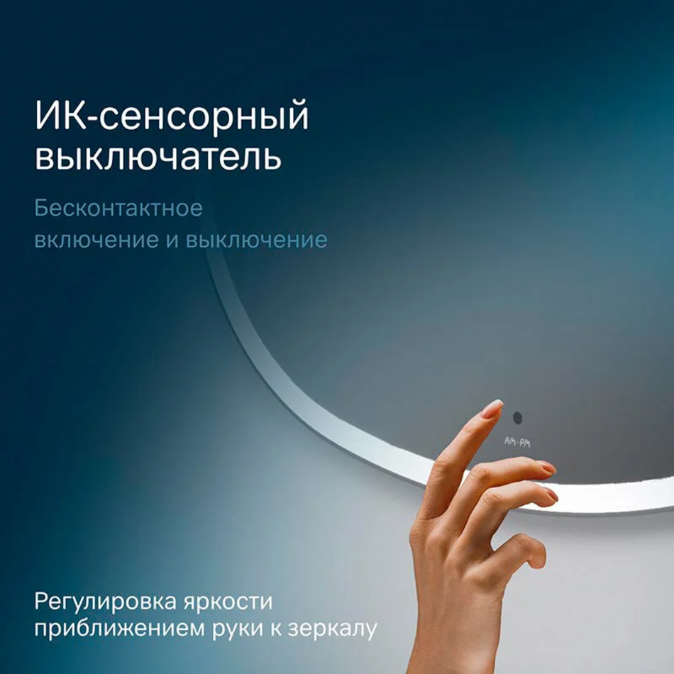 Сенсор нового поколения позволяет управлять включением/выключением и яркостью LED-подсветки без касания зеркального полотна. Зеркало дольше остается чистым.