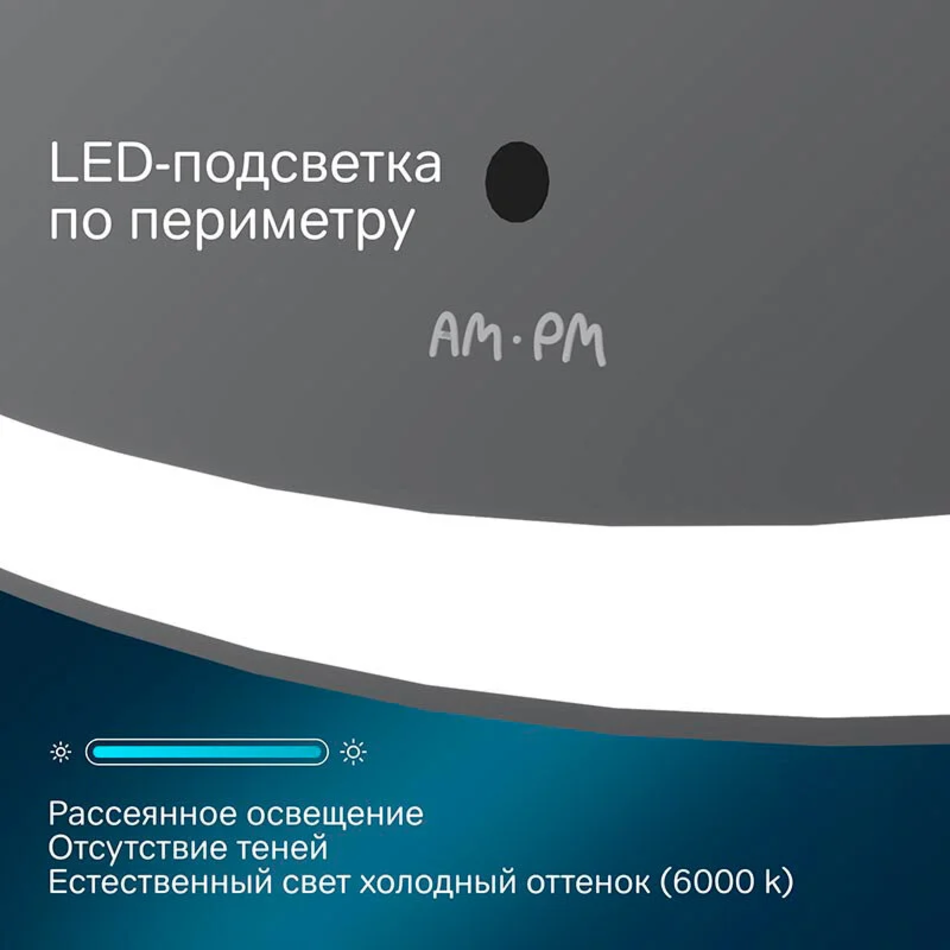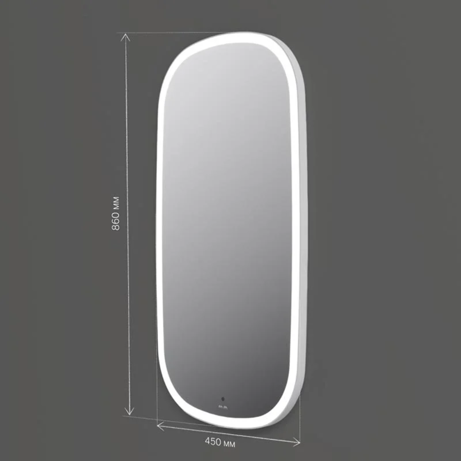 В качестве элемента LED-подсветки используется светодиодная лента, которая создает мягкое и равномерное свечение по периметру всего зеркала. Управление подсветкой осуществляется при помощи бесконтактного сенсора.