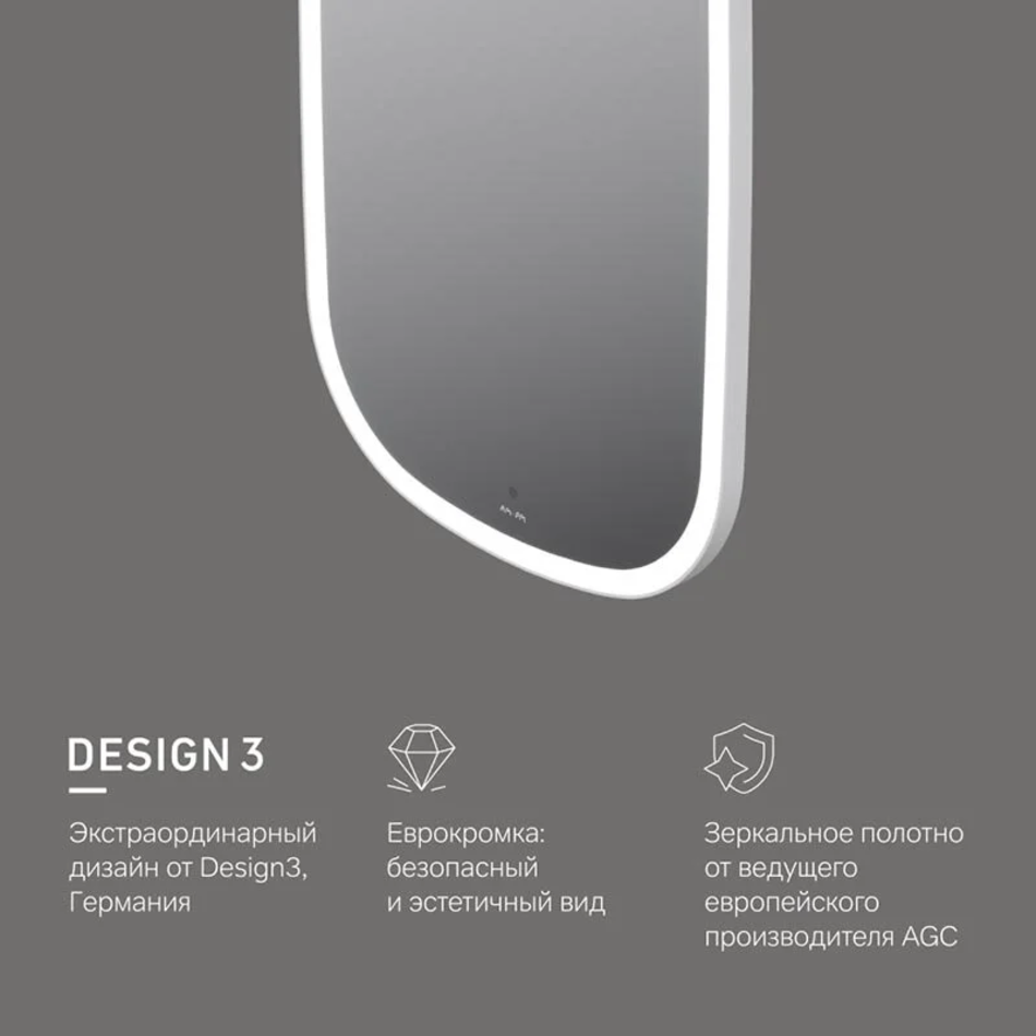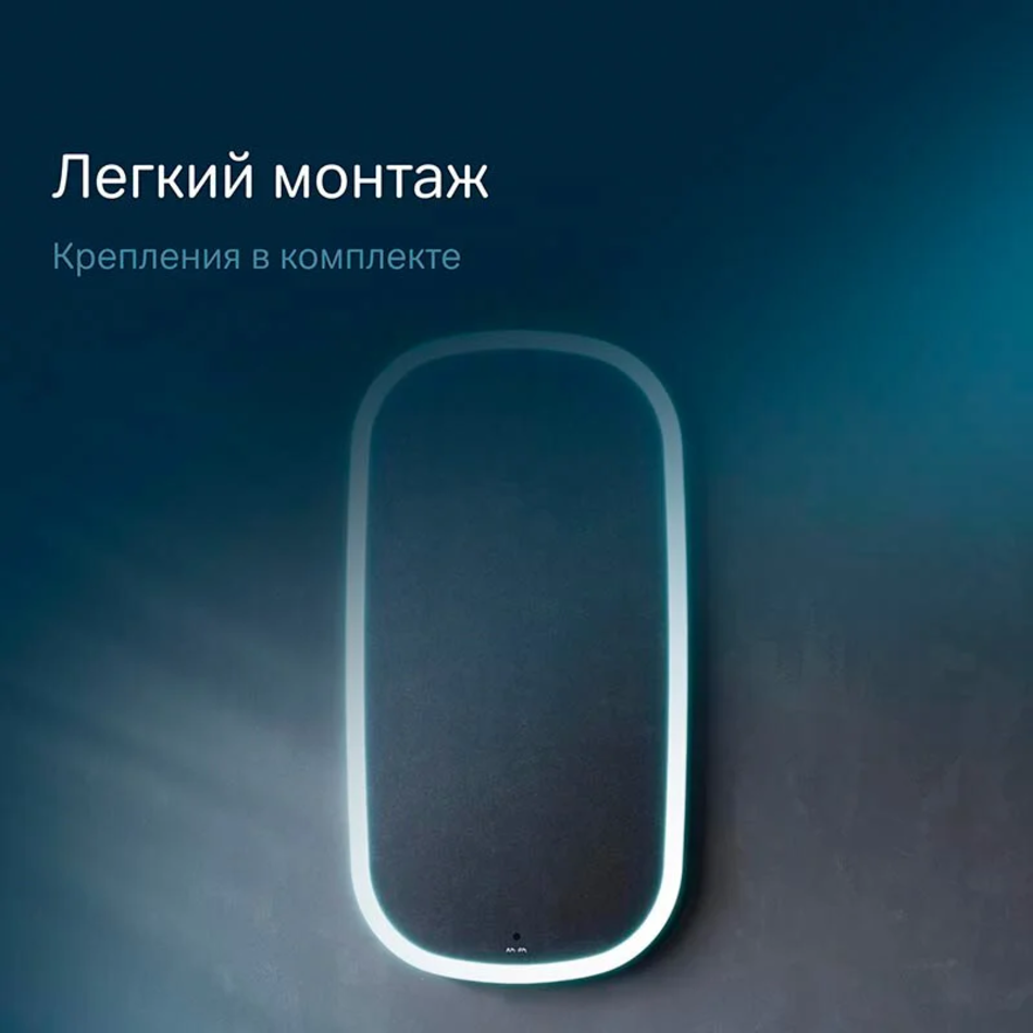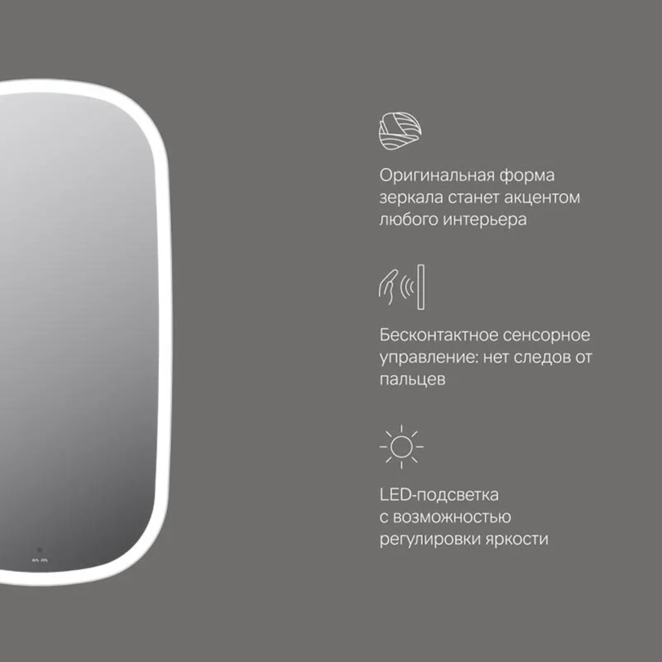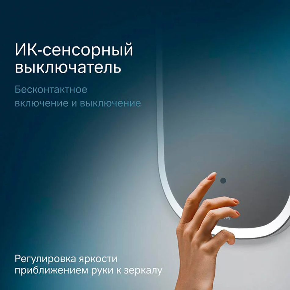 Сенсор нового поколения позволяет управлять включением/выключением и яркостью LED-подсветки без касания зеркального полотна. Зеркало дольше остается чистым.