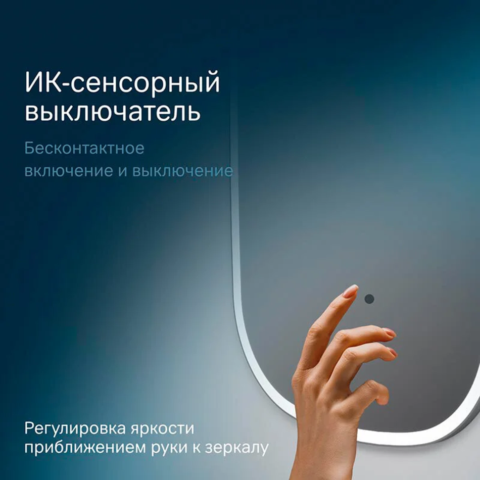 Сенсор нового поколения позволяет управлять включением/выключением и яркостью LED-подсветки без касания зеркального полотна. Зеркало дольше остается чистым.